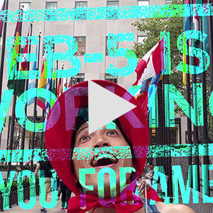 The single-channel video The Western States Nervous Under the Beginning Change shows a young Asian man celebrating an invitation to migrate to the United States in exchange for investments, such as luxury real estate development in Manhattan. Known as the “golden ticket,” the E.B.-5 was created by the U.S. Congress in 1990 to stimulate the American economy through job creation and capital investment by foreign investors. The video is emblazoned with the E.B.-5 slogan “For You. For America” and incorporates Willy Wonka’s “Golden Ticket” song.